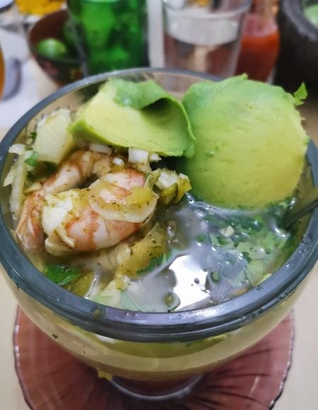 Le ponen una generosa cantidad de aguacate y los camarones por supuesto son de los grandes que parten por la mitad y son como blanco con gris. ¡Una delicia!