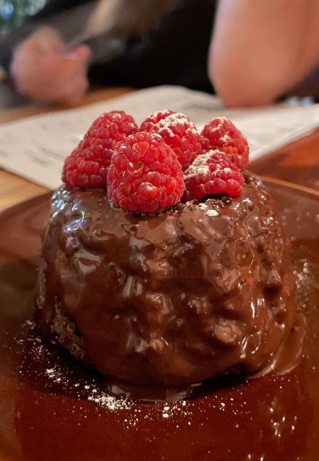 Cocoa belga, ganache de chocolate mexicano orgánico y frambuesa de Puebla, es la combinación de este pastel.
