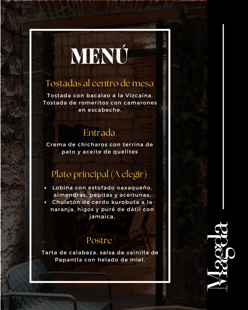 Está especializado en comida mexicana contemporánea y el 31 de diciembre tendrán un menú maridaje «espectacular» creado por el Chef Daniel Ovadia, así como entretenimiento en vivo que «sorprenderá a los comensales».