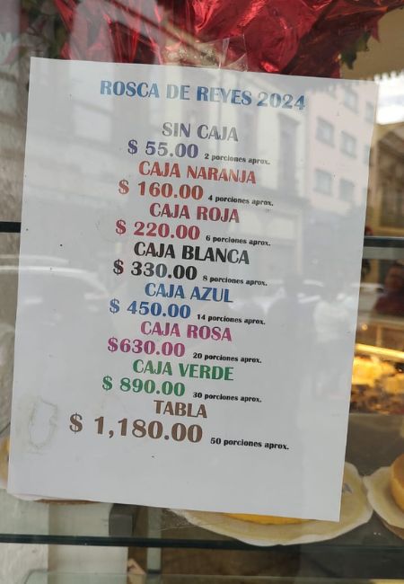 Sin más, aquí les dejo lista de los precios de las Roscas de Reyes de la Panadería La Ideal.